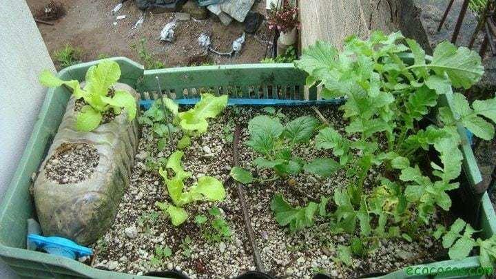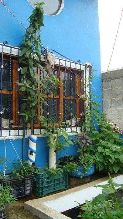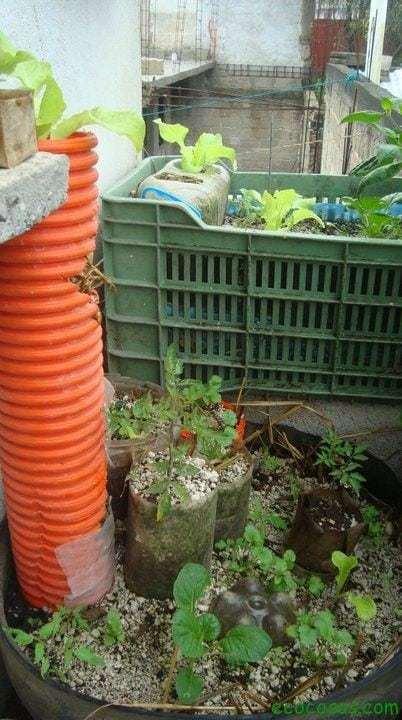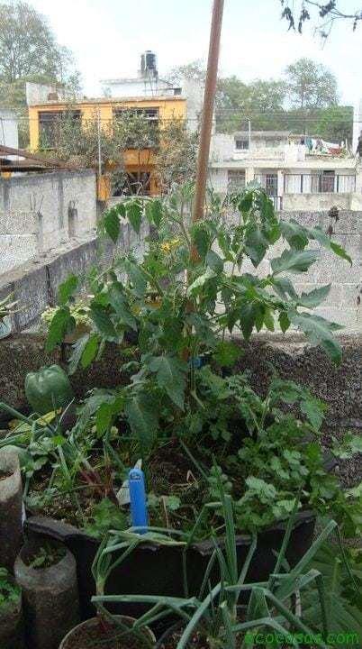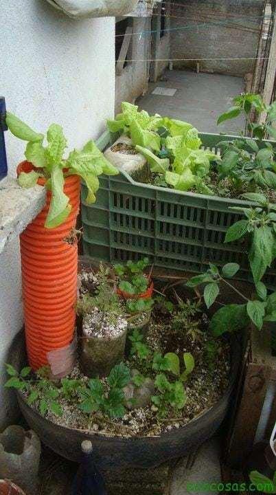 También se colocaron botes, botellas y tubos para tener un poco más de volumen para las raíces.