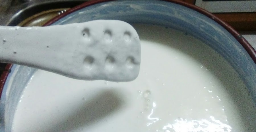 Removeremos siempre hacia el mismo sentido hasta obtener una crema tipo natilla espesa. Ahora es el momento de ponerlo en una olla que sea de porcelana mejor con 300ml de agua tibia y lo ponemos a fuego lento pues no tiene quellegar a hervir en ningún momento, lo tendremos en el fuego durante dos horas e iremos añadiendo cada 15 o 20 minutos 300ml de agua tibia y mezclamos para que quede uniforme. Pasadas dos horas apagamos el fuego y lo dejaremos hasta el día siguiente para que se enfríe bien. Al día siguiente al igual encontráis que se ha quedado una capa blanca encima y abajo parece que esta es aceite, no pasa nada, removemos bien y lo ponemos al fuego y cuando empiece a estar caliente añadiremos la pastilla de jabón rallado, lo desharemos bien y apagamos el fuego. Ahora con la batidora batimos muy bien y se nos formará una crema.