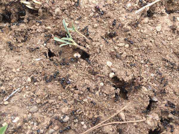 El viaje de santander a Bierge (el pueblo donde nos hospedamos), duraba alrededor de 4 horas y media. Amitad de camino (ya en La Rioja), paramos a hacer un descanso. Esa zona estaba plagada de hormigueros de las hormigas llamadas messor barbarus.