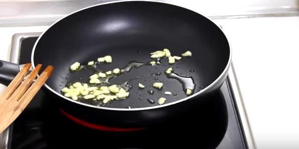 1. Comienza sofriendo 2 dientes de ajo en una sartén.