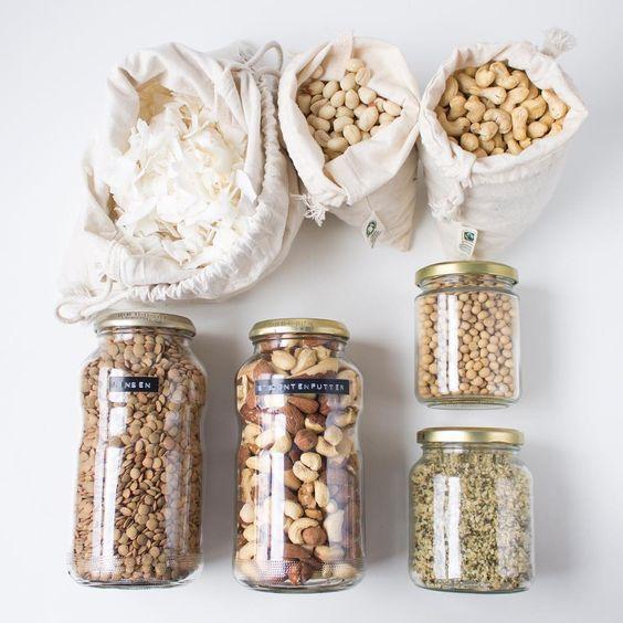 Hazte con un pequeño set de bolsas de tela, cestitas, y botes donde guardar todos estos productos gourmet. Te los puedes llevar incluso a la compra y guardarlos directamente en su envase.