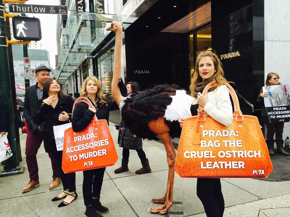La organización por la defensa de los animales PETA se hizo accionista de la marca de lujo Prada para estar presente en sus asambleas generales y así, poder pedir el fin de la venta de productos hechos con piel de avestruz.