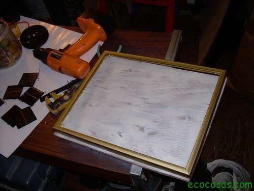 Para crear el panel se ha utilizado un marco y una tabla, la cual luego va unida a una base también de madera.