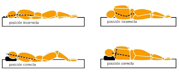Dolor de espalda. Existen muchos remedios para combatir esta dolencia, todos relacionados con el sueño. Recuéstate en tu espalda y pon una almohada o toalla enrollada debajo de tus rodillas. Así podrás mantener la curvatura natural del cuerpo y podrás continuar durmiendo de espaldas. También, de costado, pon una almohada entre las rodillas para tener más soporte. Esta postura es buena para quien sufre de caderas y rodillas. Es poco recomendable para la espalda y el cuello dormir boca abajo, pero si resulta casi imposible dormir de otra manera, coloca una almohada debajo de la pelvis y abdomen; así evitarás tensión.