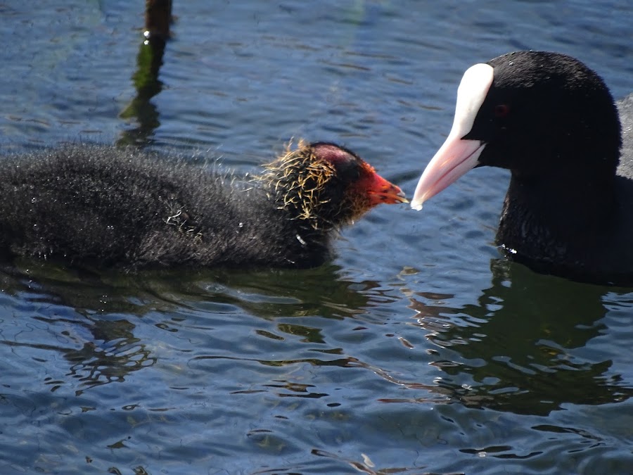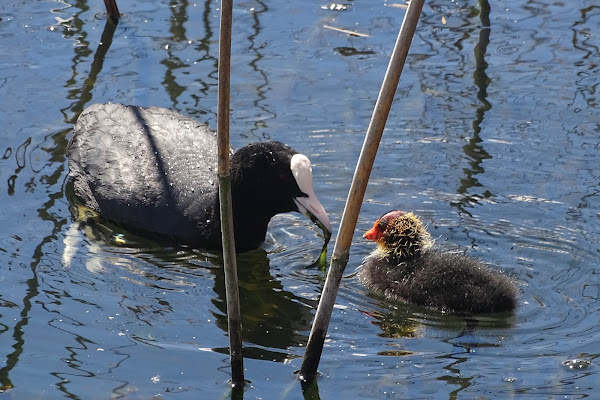 Como cada primavera, los pollos de Focha común , al nacer, prontamente abandonan el nido y son alimentados por sus progenitores.
