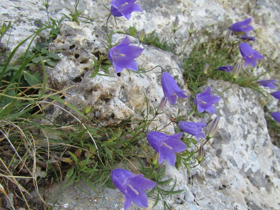 En una enorma roca, entre sus grietas, había una pequeña flor azul en forma de campana.