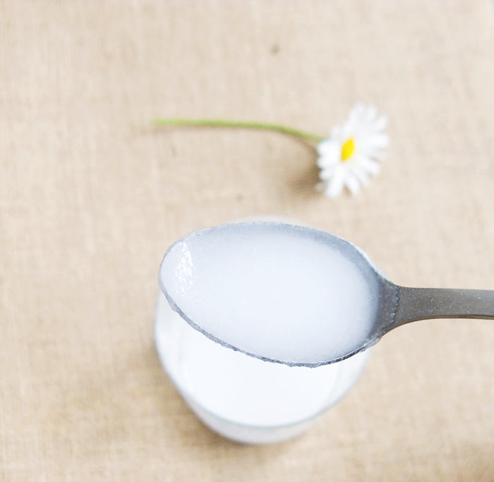 *Derrite dos cucharaditas de aceite de coco(líquido a 25ºC).