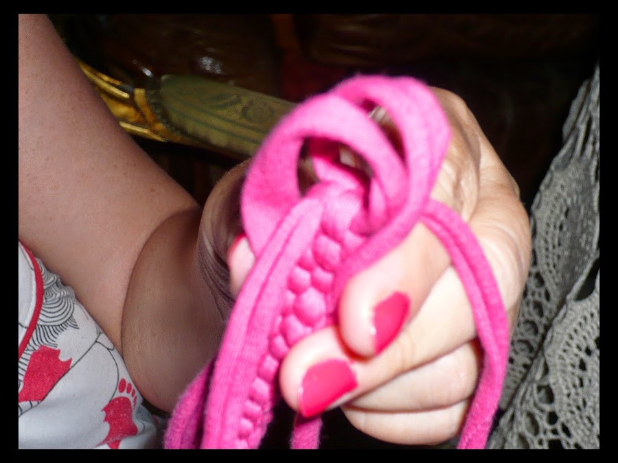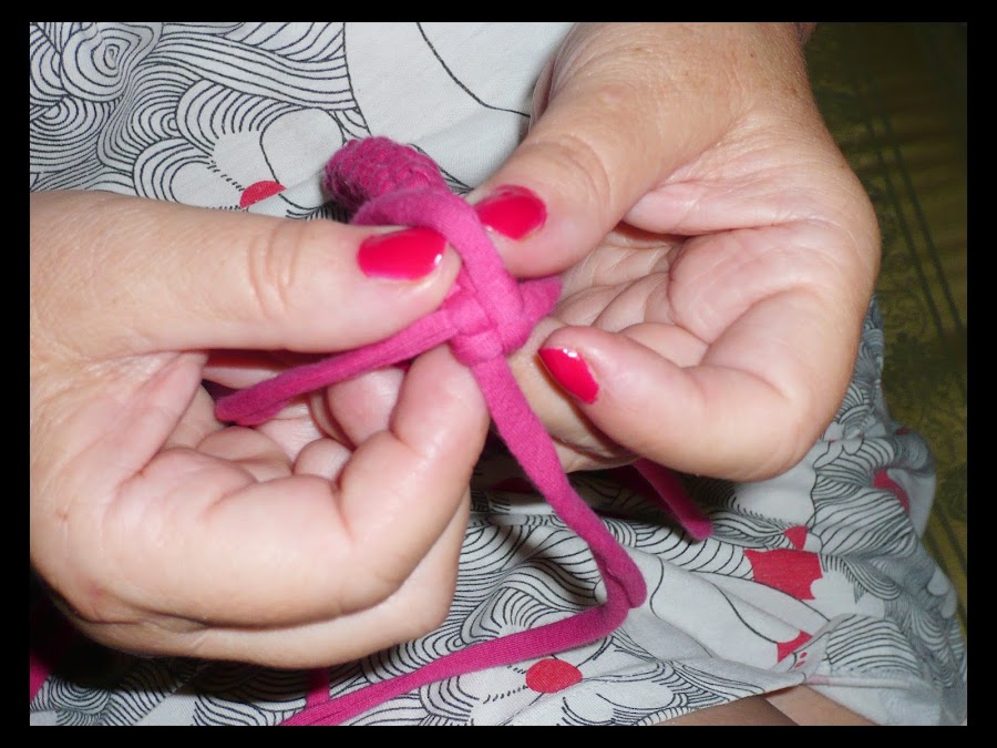 Si los finales del trapillo os quedan feos, podéis coger un trozo de trapillo y con un poco de pegamento, tapar los nudos.