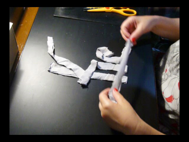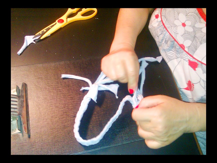 Yo os los voy a explicar con los restos de la camiseta del tutorial anterior, pero podéis coger las tiras de otra camiseta o de donde querías. Vais a necesitar: