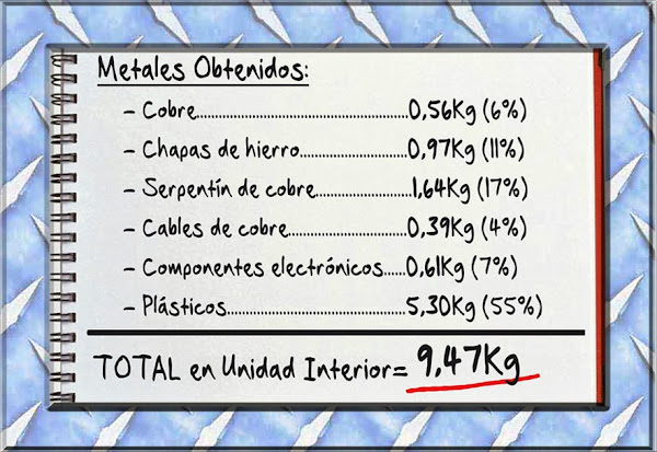 Advertencia: La unidad exterior contiene gases y aceites que deben ser manipulados por un Gestor de Residuos Peligrosos (Asociaciones de gestores de residuos). Nosotros "en casa" sólo podemos manipular y separar los metales de la unidad interior.