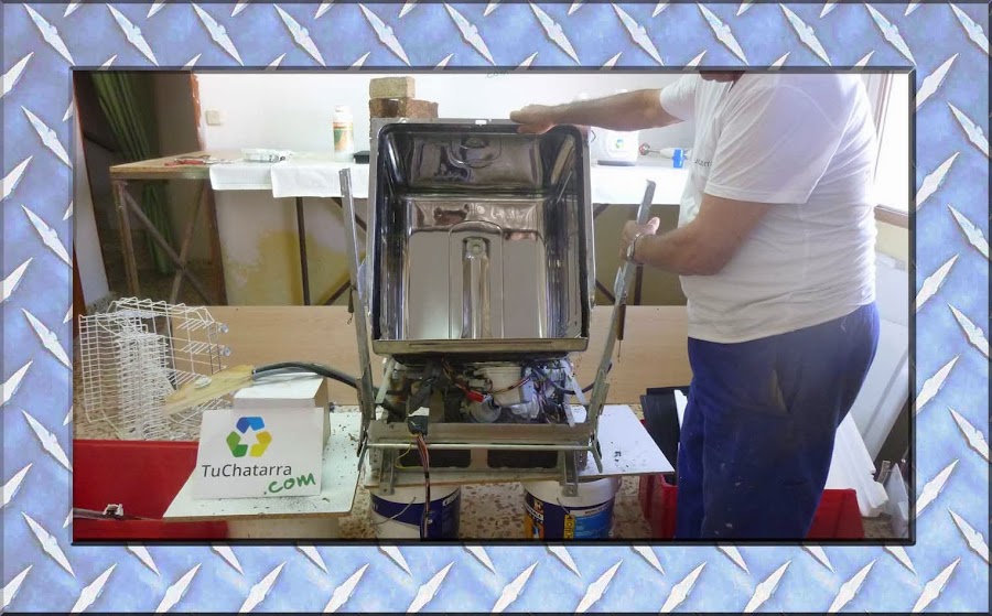 - Sólo nos quedará separar la cuba de acero inoxidable del bastidor, retirando las conexiones eléctricas que hayan quedado en la parte inferior del lavavajillas.