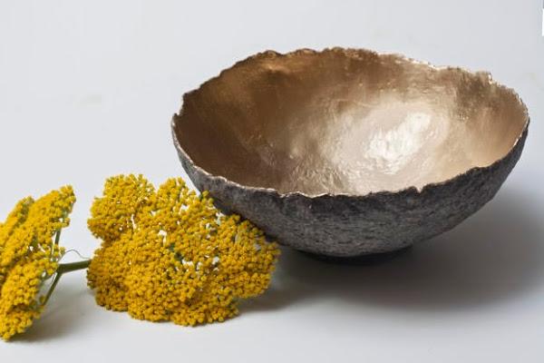 Otro ejemplo de la creatividad de mucha más gente, es esta preciosidad con la que os vais a quedar de piedra: cuenco decorativo elaborado con papel maché o papel de periódico!!!! Me encanta el toque rugoso del exterior y el liso del interior!!!
