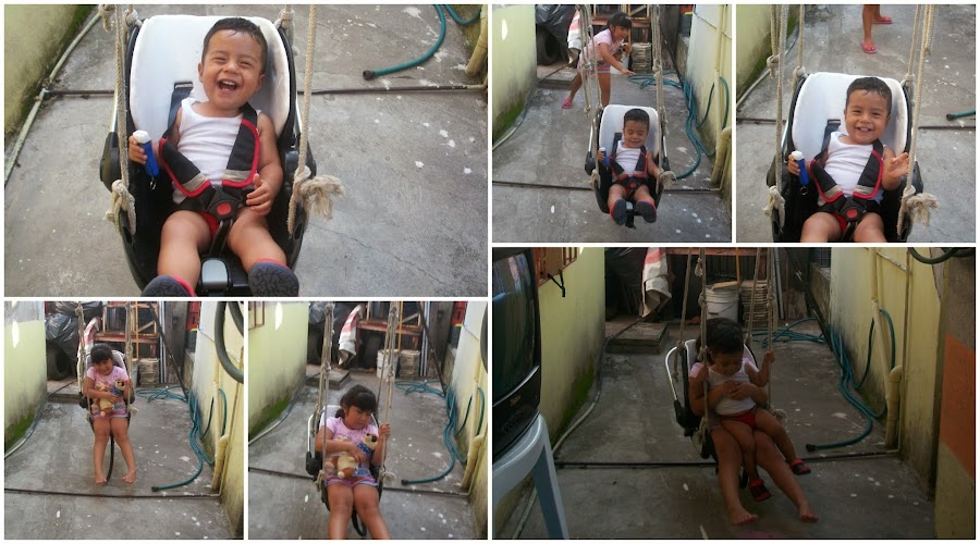 ¡Si estas viendo bien!, es una la silla del bebe del automóvil esa que compras para cuando el bebe es muy pequeño y solo funciona para bebes de 0-3 meses, mis niños ya tenían un columpio hecho con una tablilla muy inseguro para un bebe de 14 meses como el mío, así que mi padre vio este invento en otra casa y puso manos a la obra, si se dan cuenta solo le ha quitado el forro y lo ha colgado con cuerdas de barco desde los mismos orificios que ya tenía la silla aunque es posible que tengas que taladrar para formar los hoyos pero es poco complicado y muy sencillo de lograr, además la propia silla ya tiene seguros para que puedas columpiar a tu bebe sin riesgos.