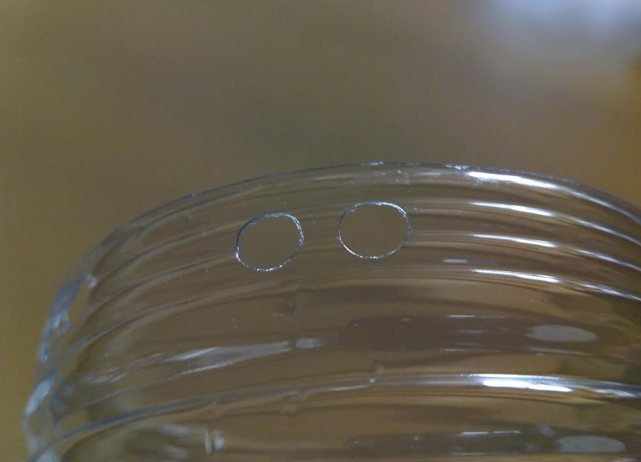 En este caso, bordeé la abertura de la botella con goma eva blanca para que nadie pudiese cortarse con el plástico de la botella.