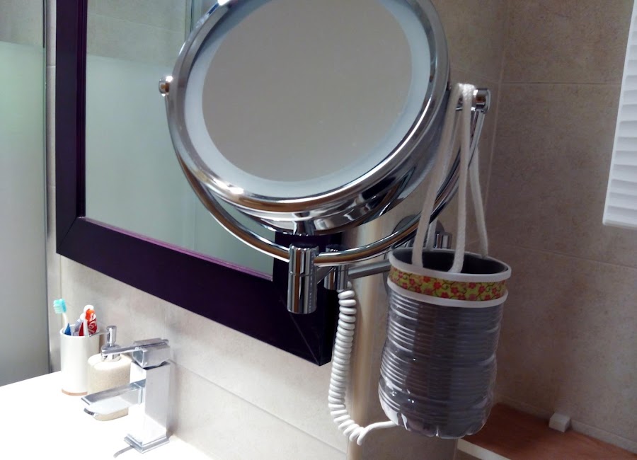 (ya que sino el peso podría deformar el brazo extensible) para tener cerca las brochas y pinceles, algún peine, coleteros,..