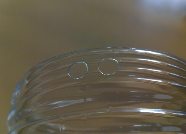 Inserta dicho rectángulo dentro de la botella y aplica un poco de pegamento para que no se mueva ni se salga.