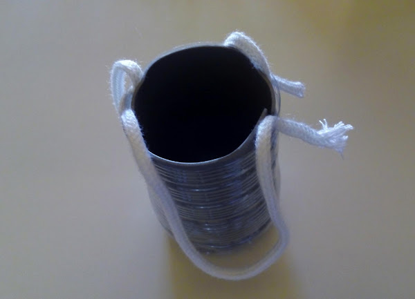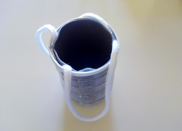 En este caso, bordeé la abertura de la botella con goma eva blanca para que nadie pudiese cortarse con el plástico de la botella.
