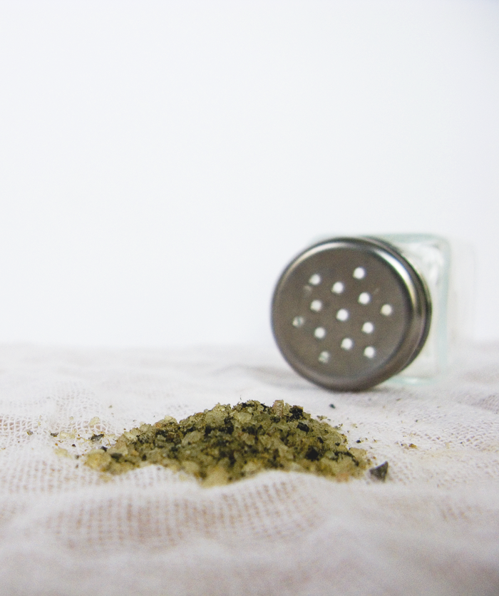 He escogido tres tipos de sal: sal rosa del Himalaya, sal de mar gorda y sal negra. En cuanto a las especias he optado por jengibre, cúrcuma y pimienta, una combinación que sin duda ayudará a la digestión. El jengibre molido lo podéis preparar vosotros mismos en casa (ver aquí). Por supuesto, la elección de las sales y especias va al gusto de cada uno.