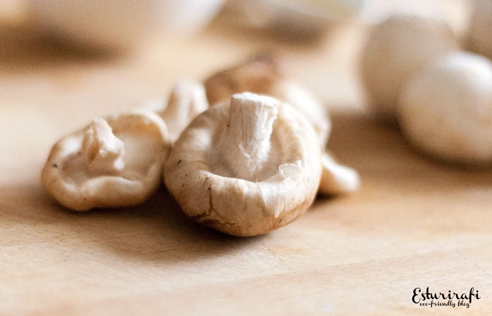 Además es un plato muy otoñal, ya que estamos en la época de las setas y en esta receta puedes utilizar las que más te gusten. Yo fui a lo sencillo, con champiñones y shiitake. En la receta original utilizan setas deshidratadas.