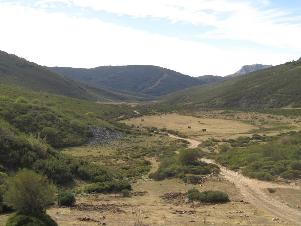 Al fondo, Vega de Liébana.Al llegar a la Fuente de la Tenada, nosotros cogimos el desvío de la izquierda, el cual terminaba en el pueblo de Barrio. Si no se toma el desvío, se termina en el pueblo de Valcayo.