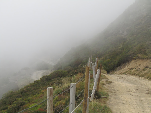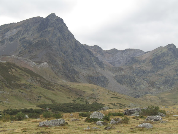 Al terminar la ascensión y justamente al llegar al lugar de la foto anterior, empieza la bajada al valle de Pineda. La bajada es algo corta, pero se requiere algo de destreza, ya que el sendero está en mal estado y lleno de guijarros bastante grandes, con lo que hay que tener algo de precaución.