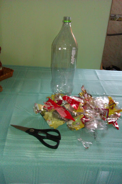 Una vez , recolectado , gran cantidad de embolturas , esto se puede hacer entre los familiares , amigos , tiendas cercanas etc. procedemos a picarlas con una tijera, del tamaño que se deseen.