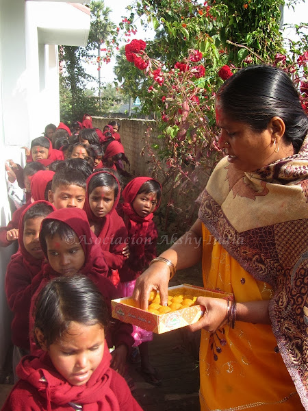 A continuación ha habido reparto de dulces laddus como marca la tadición y los niños como siempre felices de endulzarse un poco.