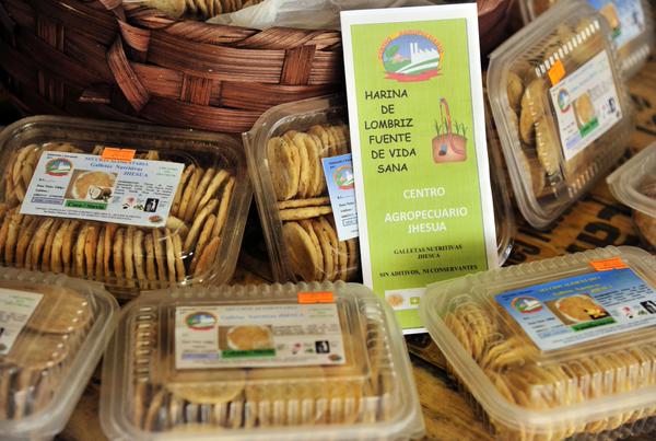 Galletas de harina de lombriz producidas en Cochabamba, Bolivia.