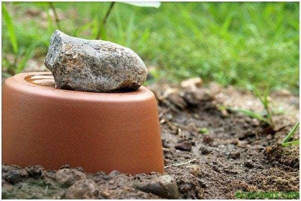 Casi tenemos listo el sistema, es muy simple, ahora toca hacer un hoyo en la tierra cerca de donde tendremos las plantas que serán regadas por la olla de tamaño suficiente para enterrar la misma, dejaremos la parte superior sin enterrar, para poder ir rellenando de agua el sistema, y para poder localizar donde se encuentra si no podríamos correr el riesgo de romperla al estar trabajando la tierra.