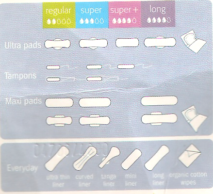En el envase encontramos una lista para saber que tampones tenemos que usar, según nuestra cantidad de menstruación.