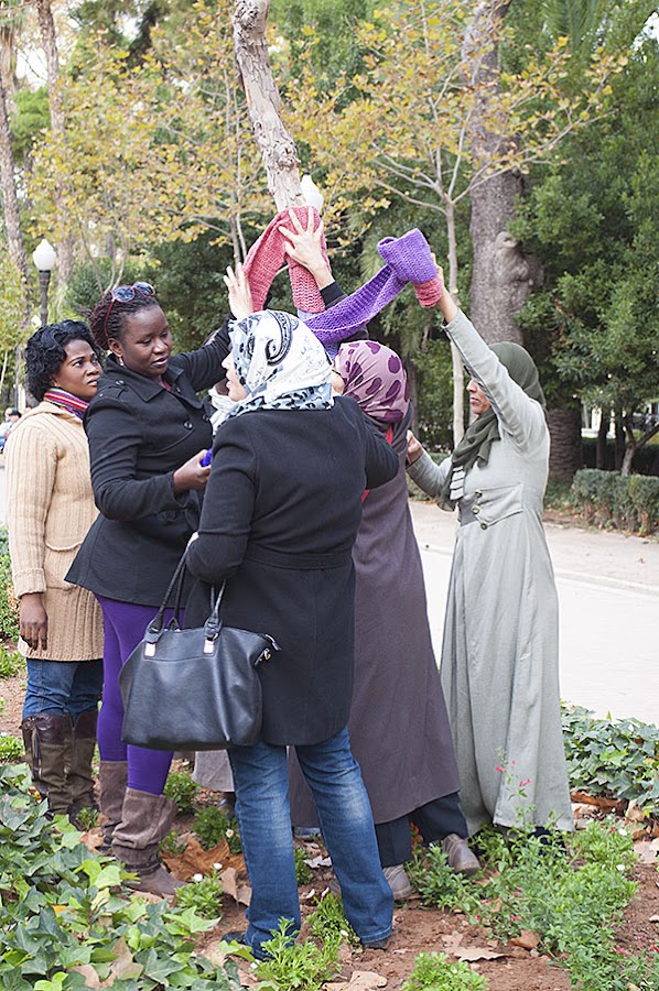 De esa mañana en Ribalta me llevo muy buenas sensaciones. Me pareció precioso ver a tantas mujeres tan diferentes haciendo lo mismo por la misma causa. Mujeres de todas las razas, edades y religiones, ayudándose a montar los árboles, a tejer unas vueltas más o enseñando a agarrar un ganchillo.