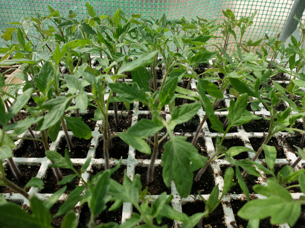 He hecho una selección de las variedades sembradas en esta primera tanda, entre las que se encuentra los Matias, Pera, Kumatos, Rosado Green Zebra, etc. Las primeras plantas que son de la variedad Matias, ya están echando flores en las primeras ramificaciones próximas al suelo. También le he colocado el entuturado de las plantas para guiarlas en su crecimiento.