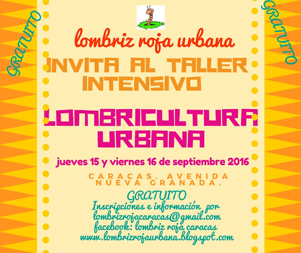Todos y todas están cordialmente invitados al taller intensivo de lombricultura urbana que impartiremos el próximo jueves 15 y viernes 16 de septiembre . Es gratuito, los unicos requisitos son: