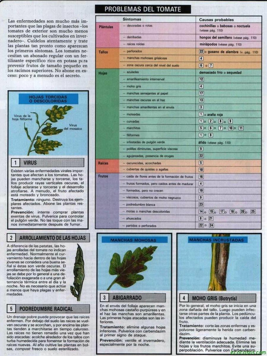 Hay varias enfermedades y hongos, los hongos los podemos tratar con una solución de agua y leche de vaca, en relación de diez a uno, es buen fungicida, las enfermedad algunos son intratables, y como hay mucha variedad le voy a poner una infografías que encontré y sino me mandan mail a contacto@ecocosas.com con fotos del problema y trato de ayudarles.