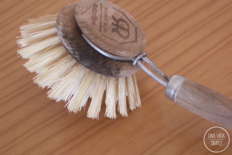 Al principio sopesamos utilizar esponjas de luffa. Sin embargo, después de investigar un poco nos parecían un poco blandas para la tarea, así que acabamos comprando este cepillo en SinPlástico. Tengo que decir que, aparte de ser barato y durar una eternidad, quita la suciedad más pegada muy pero que muy bien, sobre todo en sartenes, ollas o platos. Sin embargo tiene un punto flaco, y es que no funciona tan bien con utensilios más pequeños como cubiertos. Por eso, después de volver a investigar, decidimos combinarlo con el estropajo de esparto de toda la vida, que es súper caro y muy difícil de encontrar. Es broma. Cuesta unos 40 céntimos en cualquier ferretería de barrio. Además es natural, 100% biodegradable, práctico, no retiene la humedad, funciona a las mil maravillas y huele estupendamente.