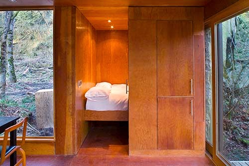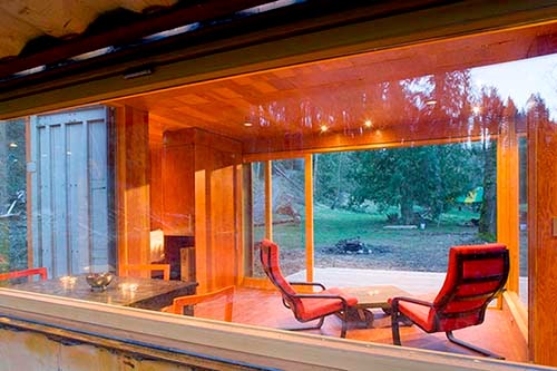 En el interior se utilizo madera también reciclada de un viejo gimnasio de una escuela.