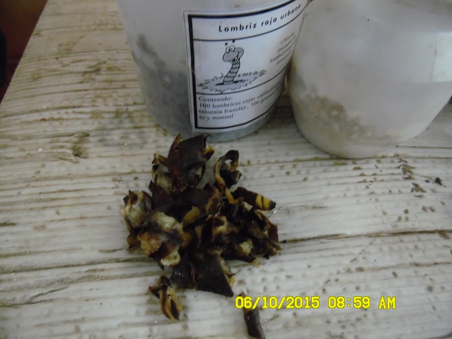 Pero debemos recordar que las lombrices no tienen dientes ni garras, por ende solo comen los alimentos que estan parcialmente disueltos. Asi que si le ponemos un trozo de papa de 100 gramos, ellas solo se la podrán comer cuando ese pedazo se haya parcialmente descompuesto. Lo que demora un tiempo de por lo menos un mes. Por eso debemos darle el alimento lo más picado o triturado que podamos. Asi se lo comen rapidamente, crecen más, se reproducen más y cada vez podrán transformar más cantidad de "conchas" en humus.